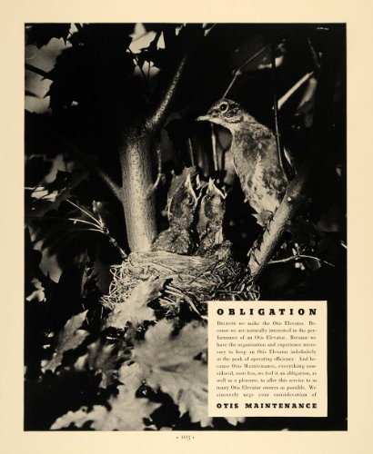 1936 Ad Otis Elevator Bird Tree Nest Baby Maintenance - Original Print Ad Review