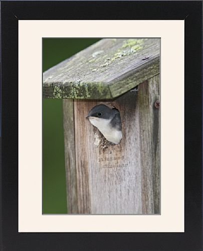 FRAMED PRINT This 14 x11 Framed Print features an image of Tree Swallow - young bird ready to fledge from nest box chosen by Ardea Wildlife Pets. Estimated image size 356x237mm.